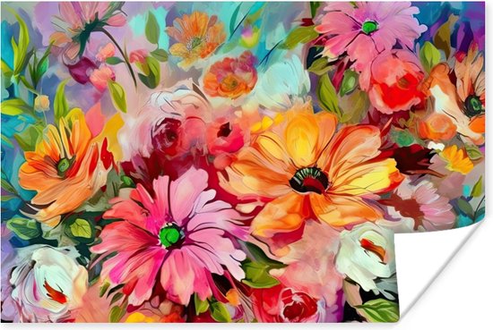 Poster Fleurs - Coloré - Art - Peinture à l'huile - 120x80 cm