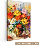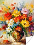 Poster Fleurs - Colorées - Peinture à l'huile - Pot de fleurs - 60x80 cm