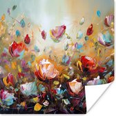 Poster Fleurs - Peinture à l'huile - Art - Nature - 100x100 cm XXL