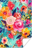 Poster Fleurs - Peinture à l'huile - Coloré - Nature - 120x180 cm XXL