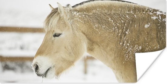 Poster Gros plan d'un cheval du fjord dans la neige - 80x40 cm