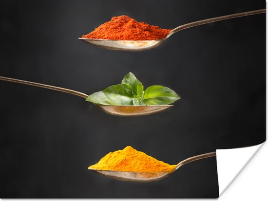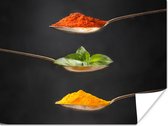 Posters - Herbes - Cuillère - Épices - Zwart - Italien - Affiche photo