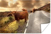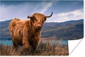 Poster Highlander écossais avec vue montagneuse 120x160 cm - Tirage photo sur Poster (décoration murale salon / chambre) / Poster Animaux sauvages XXL / Groot format!
