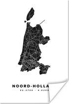 Poster Holland du Nord - Carte routière des Nederland - Zwart - 60x120 cm