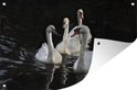 Poster Jardin Quatre petits cygnes dans l'eau sombre 90x60 cm - Toile de jardin / Toile d'extérieur / Peintures d'extérieur (décoration de jardin)