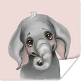 Poster Jungle - Chambre d'enfant - Fleurs - Eléphant - 75x75 cm