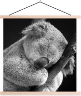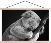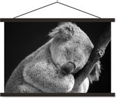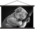 Poster koala endormi sur fond noir en textielposter noir et blanc lattes noires 90x60 cm - Tirage photo sur plaque scolaire (décoration murale salon / chambre)