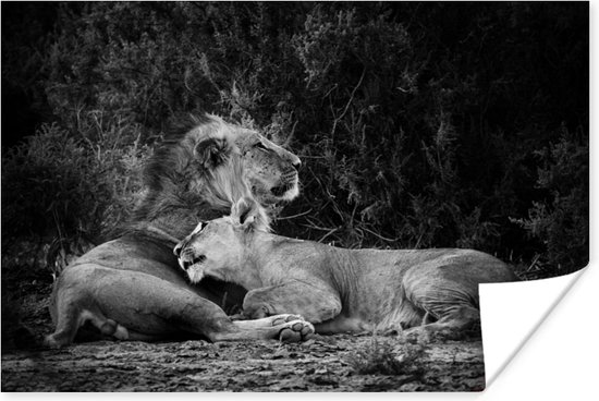 Poster Lion et lionne papier 90x60 cm - Tirage photo sur Poster (décoration murale salon / chambre) / Poster Animaux sauvages