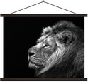 Poster Lion sur fond noir en textielposter noir et blanc lattes noires 120x90 cm - Tirage photo sur plaque scolaire (décoration murale salon / chambre)