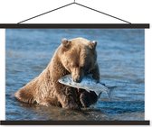 Poster Ours brun au soleil lattes textielposter noir 150x100 cm - Tirage photo sur plaque scolaire (décoration murale salon / chambre)