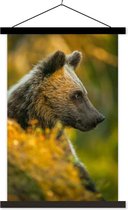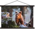 Poster Ours brun au soleil lattes textielposter noir 90x60 cm - Tirage photo sur assiette école (décoration murale salon / chambre)