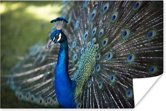 Poster Paon vert avec belle fourrure de plumes 90x60 cm - Tirage photo sur Poster (décoration murale salon / chambre)