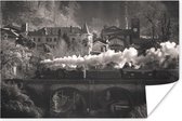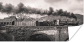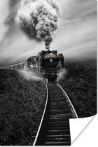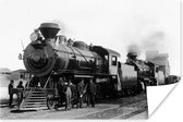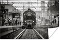 Poster photo Zwart et blanc d'une locomotive à vapeur sur une gare Poster 60x40 cm - Tirage photo sur Poster (décoration murale salon / chambre)