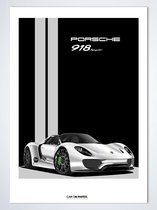 Porsche 918 Spyder Wit sur Poster - 50 x 70 cm - Poster Voiture Chambre d'Enfant / Chambre / Bureau