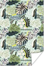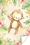 Poster Singe - Fleurs - Plantes - Jungle - 80x120 cm