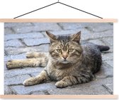 L'affiche textile est imprimée sur une toile solide avec deux lattes de bois vierges en haut et en bas. Une ficelle est attachée aux lattes, de sorte que la commission scolaire puisse être facilement suspendue. Les affiches textiles MuchoWow sont disponibles dans plus de 25 tailles différentes. En plus des lattes en bois vierges, les affiches textiles sont également disponibles avec des lattes noires ou blanches.