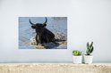 Poster Un taureau sort de l'eau en Camargue - 30x20 cm