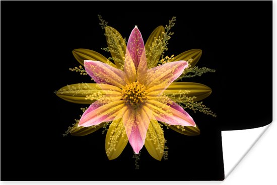 Poster Une fleur jaune sur fond noir 120x80 cm - Tirage photo sur Poster (décoration murale salon / chambre)