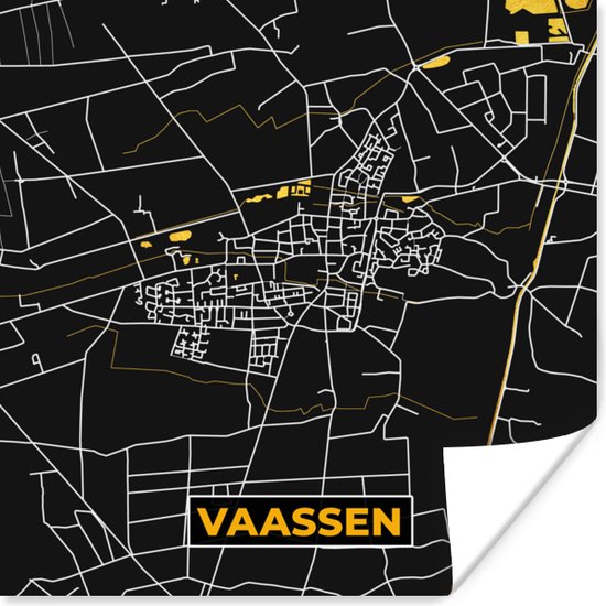 Poster Vaassen - Plan de la ville - Carte - Carte - Or - Nederland - 100x100 cm XXL