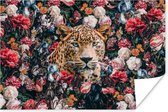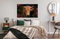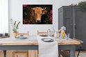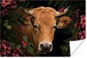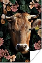 Poster Vache - Fleurs - Animaux - Marron - 120x80 cm
