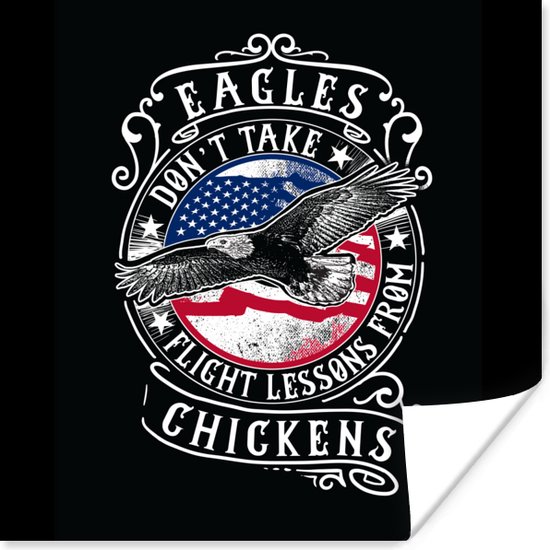 Poster Vogel - Drapeau - Amérique - Rétro - 100x100 cm XXL - Cadeau Vaderdag - Cadeau - Cadeau pour lui - Astuce - Homme