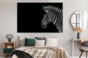 Poster Zebra sur fond noir papier 180x120 cm - Tirage photo sur Poster (décoration murale salon / chambre) / Poster Animaux sauvages XXL / Groot format!
