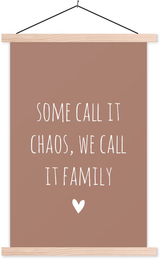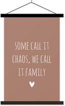 Posterhanger avec affiche - Affiche scolaire - Citation anglaise Certains l'appellent chaos, nous l'appelons famille avec un cœur sur fond marron - 60x90 cm - Lattes vierges