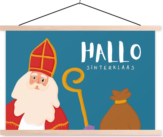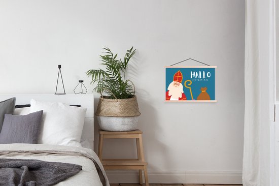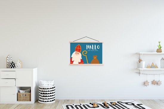 Posterhanger avec affiche - Affiche scolaire - Sinterklaas - Citations - Sint - Hello Sinterklaas - Texte - 60x40 cm - Lattes vierges