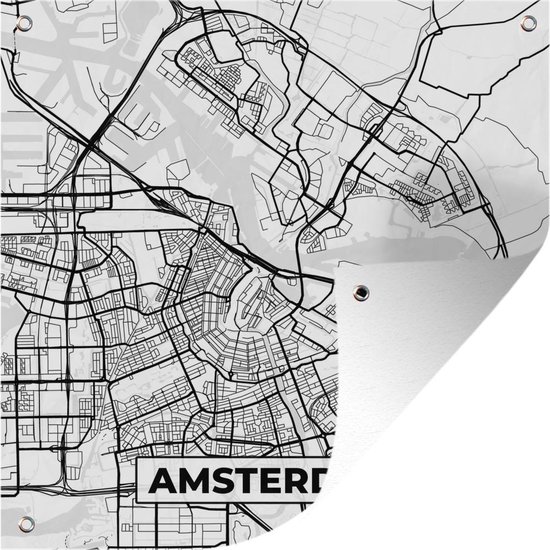 Posters de jardin Carte - Amsterdam - Zwart - Wit - 50x50 cm