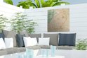 Les Posters de jardin, également appelées toiles de jardin, sont des affiches spécialement conçues pour être accrochées à l'extérieur. Cette nappe de jardin peut donc prendre une raclée. La voile Bisonyl a été utilisée pour cette affiche extérieure. Cette voile est une bâche enduite avec une belle finition. L'affiche de jardin est résistante aux UV, elle ne se décolore donc pas au soleil. Plusieurs anneaux ont été placés dans la toile pour que vous puissiez facilement l'accrocher! Jusqu'à une taille de 120x80 cm, les anneaux sont dans les coins, avec des tailles plus grandes, les anneaux viennent tous les 60 cm. Le tissu résiste aux différentes influences climatiques et est garanti 3 ans.