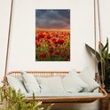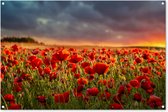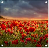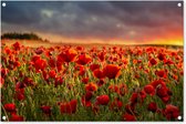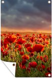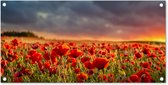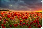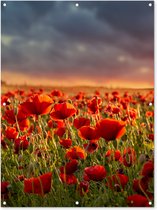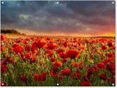 Posters de jardin Coucher de soleil - Coquelicots - Rouge - Fleurs - Champ - Nature - 60x90 cm - Toile jardin - Affiche extérieure