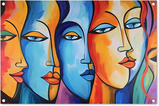 Posters de jardin d'extérieur Tête - Peinture à l'huile - Peinture - Coloré - 90x60 cm - Toile de jardin - Affiche d'extérieur