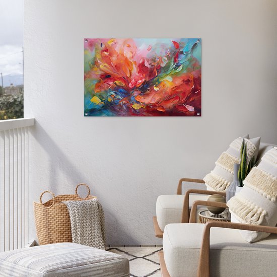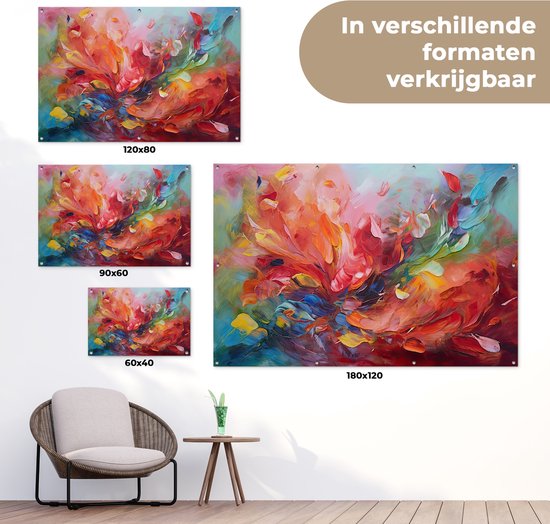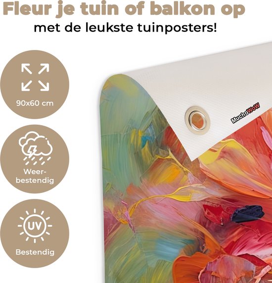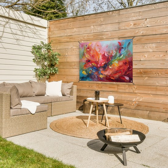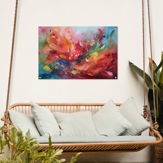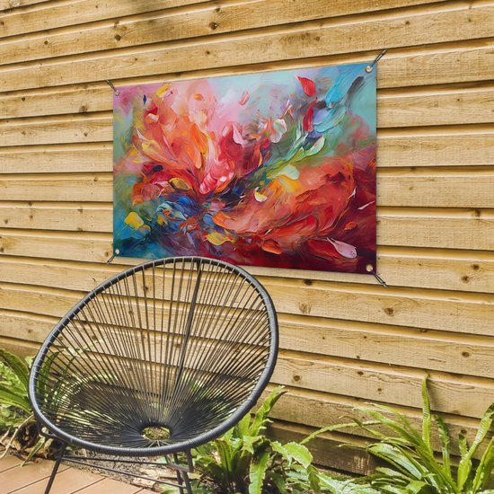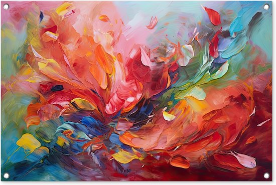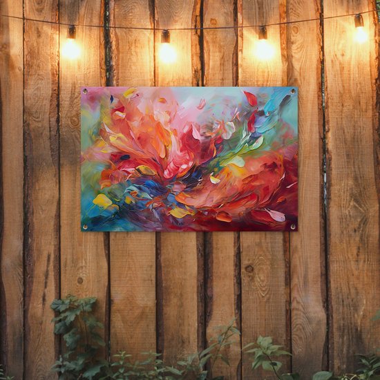 Posters de jardin de jardin extérieur Peinture à l'huile - Art - Abstrait - Coloré - 90x60 cm - Toile de jardin - Affiche d'extérieur