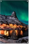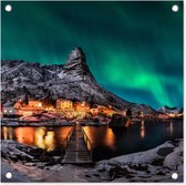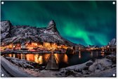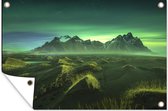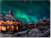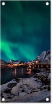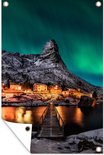 Posters de jardin extérieur Aurores Boréales - Islande - Neige - Village - Vert - Montagnes - 60x90 cm - Toile de jardin - Affiche extérieure