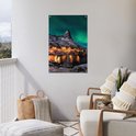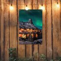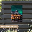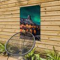 Tableau de jardin - Aurores boréales - Islande - Neige - Village - Verdure - Montagnes - Posters de jardin
