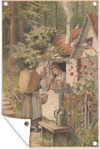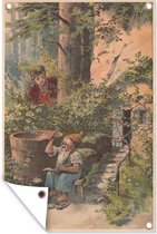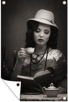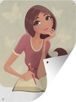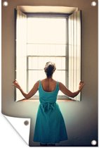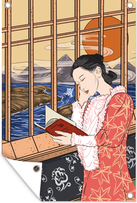 Posters de jardin extérieur dessin d'une femme lisant près de la fenêtre - 60x90 cm - Toile jardin - Affiche extérieure