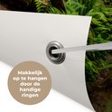 Les Posters de jardin, également appelées toiles de jardin, sont des affiches spécialement conçues pour être accrochées à l'extérieur. Cette nappe de jardin peut donc prendre une raclée. La voile Bisonyl a été utilisée pour cette affiche extérieure. Cette voile est une bâche enduite avec une belle finition. L'affiche de jardin est résistante aux UV, elle ne se décolore donc pas au soleil. Plusieurs anneaux ont été placés dans la toile pour que vous puissiez facilement l'accrocher! Jusqu'à une taille de 120x80 cm, les anneaux sont dans les coins, avec des tailles plus grandes, les anneaux viennent tous les 60 cm. Le tissu résiste aux différentes influences climatiques et est garanti 3 ans.