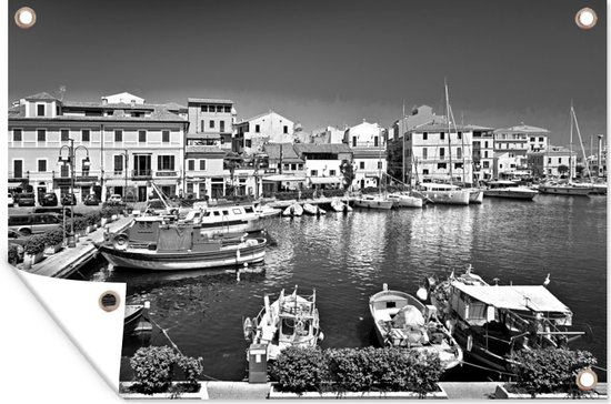 Posters de jardin extérieur Le port de La Maddalena Sardaigne - noir et blanc - 90x60 cm - Toile de jardin - Affiche extérieure