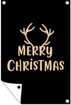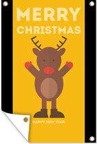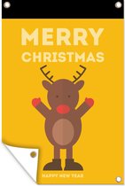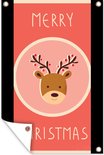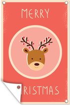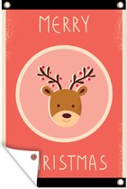 Posters de jardin extérieur Renne - Citations - Noël - Joyeux Noël - Rouge - Vintage - 60x90 cm - Toile jardin - Affiche extérieure