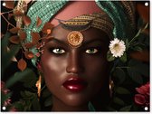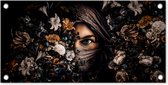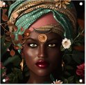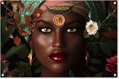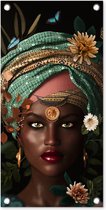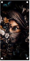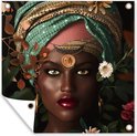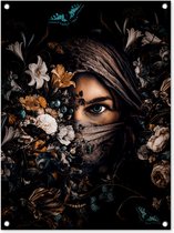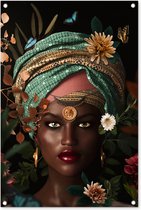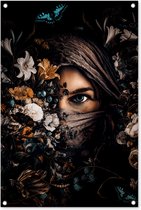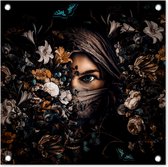 Posters de jardin Femme - Fleurs - Papillons - Plantes - Bijoux - Luxe - 50x50 cm - Toile jardin - Affiche extérieure