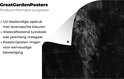 Les Posters de jardin, également appelées toiles de jardin, sont des affiches spécialement conçues pour être accrochées à l'extérieur. Cette nappe de jardin peut donc prendre une raclée. La voile Bisonyl a été utilisée pour cette affiche extérieure. Cette voile est une bâche enduite avec une belle finition. L'affiche de jardin est résistante aux UV, elle ne se décolore donc pas au soleil. Plusieurs anneaux ont été placés dans la toile pour que vous puissiez facilement l'accrocher! Jusqu'à une taille de 120x80 cm, les anneaux sont dans les coins, avec des tailles plus grandes, les anneaux viennent tous les 60 cm. Le tissu peut résister aux différentes conditions météorologiques et durera au moins 3 ans.