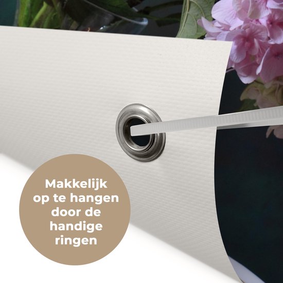 Les affiches de jardin, également appelées toile de jardin, sont des affiches spécialement adaptées pour être suspendues à l'extérieur. Cette nappe de jardin peut donc prendre une raclée. La voile Bisonyl a été utilisée pour cette affiche extérieure. Cette voile est une bâche enduite avec une belle finition. L'affiche de jardin est résistante aux UV, elle ne se décolore donc pas au soleil. Plusieurs anneaux ont été placés dans la toile pour que vous puissiez facilement l'accrocher! Le tissu peut résister aux différentes conditions météorologiques et durera au moins 3 ans.