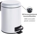 Poubelle cosmétique à pédale Leman blanc 3 l - seau cosmétique, capacité poubelle : 3 l, acier, 17 x 25 x 22,5 cm, blanc