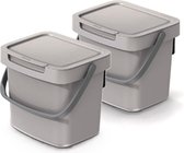 Poubelle de comptoir Keden GFT - 2x - blanc crème - 3L - verrouillable - 19 x 17 x 15 cm - couvercle/poignée - tri des déchets