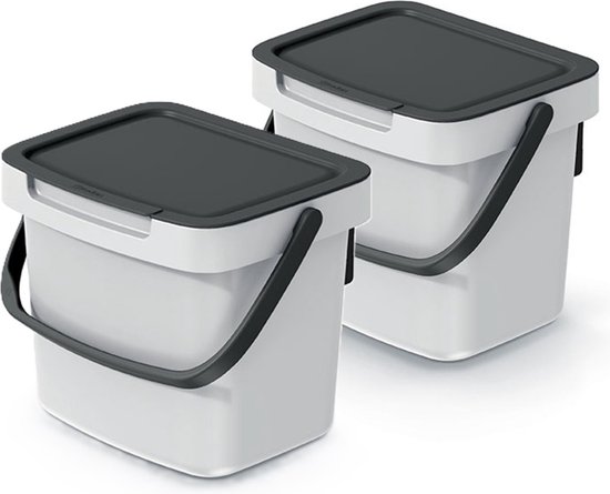 2x poubelle de tri ou de séparation des déchets organiques ou seau à déchets pour la cuisine ou sur le comptoir. Equipé d'un couvercle et d'une poignée verrouillables. Klein compartiment de 3 litres. Couleur: blanc crème. Dimensions : 19 x 17 x 15 cm.