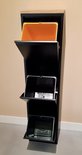 Les façades de la poubelle peuvent s'ouvrir indépendamment les unes des autres. Parce que les façades s'inclinent vers l'avant, vous êtes également libéré des éclaboussures sales sur le mur. Un joli plus.