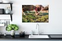 Poules mangeant des pommes 60x40 cm - Tirage photo sur toile (Décoration murale salon / chambre) / Animaux de la ferme Peintures sur toile