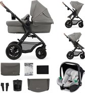La poussette Nelia 4en1 de la marque Baninni est une poussette polyvalente dotée de parties réglables. De cette façon, vous pouvez régler le dossier, le pare-soleil et la poignée de poussée, et retirer la poignée avant. La poussette est équipée d'une ceinture à 5 points, d'un système de freinage central, d'un panier, de roulettes verrouillables et est pliable de manière compacte. Le Nélia convient de 0 à 3 ans, avec un poids maximum de 22 kg. Dimensions de la poussette ouverte : 59 x 92 x 109 cm | Dimensions poussette fermée : 59 x 81 x 27,5 cm | Poids de la poussette 11,6 kg. Vous pouvez fixer le siège auto Nelia à la poussette avec des adaptateurs ou dans la voiture avec la base du siège auto et ISOFIX. Le siège auto et la base i-Size conviennent dès la naissance avec un poids maximum de 13 kg. Dimensions du siège auto 44 x 65 x 57 cm | Poids du siège auto 3,8 kg. Dimensions du socle 35 x 59,5 x 13 cm | Poids du socle 4,3 kg. La poussette est également livrée avec une chancelière assortie. La chancelière est rembourrée et peut être fixée avec du velcro et une fermeture éclair. Dimensions 45,5 x 40 x 6 cm | Poids 0 kg. L'ensemble Nelia est recouvert d'un tissu résistant et imperméable à structure gaufrée.