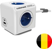 PowerCube Extended Duo USB - Câble de 1,5 mètre - Blanc / Bleu - 3 prises - 2 chargeurs USB - Type E avec broche de terre (Belgique \ / France)
