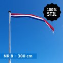 Premium hollandais de qualité supérieure 300 cm. Fanion rouge blanc bleu Nederland, fanion de bienvenue en version 100% silencieuse!